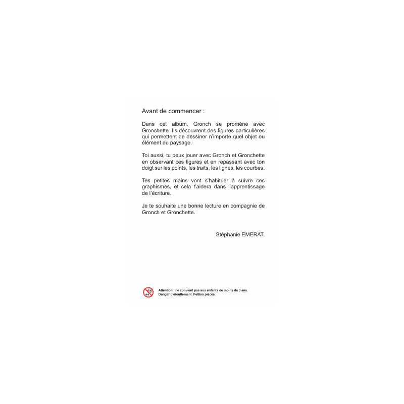 Gronch se promène à la plage et découvre toutes sortes de nouveaux objets et éléments du paysage. Il retrouve Gronchette, et tous deux s’amusent à suivre les points, les traits… Ils créent des chemins au gré des graphismes rencontrés.