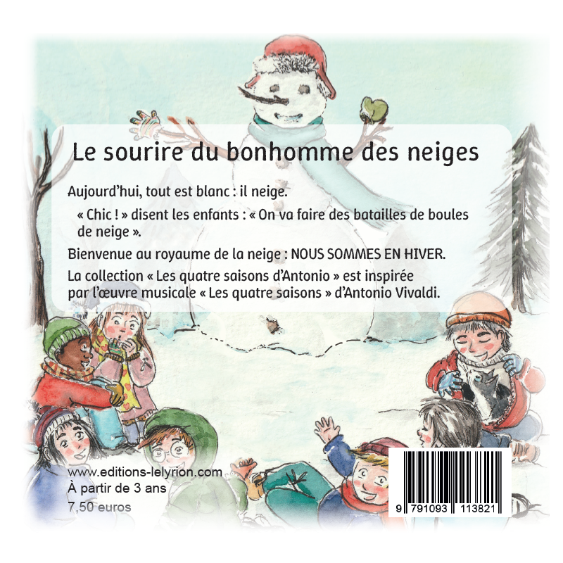 L’hiver est une saison où les couleurs sont aussi ternes qu’adoucies. Les arbres ont perdu leurs feuilles, les sapins restent verts. Mais voici que la neige est tombée en abondance. Les enfants jouent et Antonio a une autre idée, plus grande. Il souhaite façonner un bonhomme des neiges. Les enfants l’aident et l’événement se termine par une ronde : "Les sourire du bonhomme des neiges".